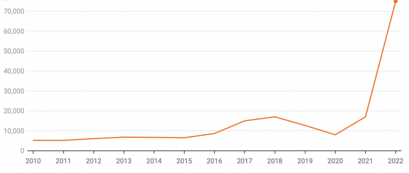 Lets look at what happened once equity markets realised that the lithium supply shortage has been brought forward; from the start of 2020, the price of lithium surged to an all time high, peaking at just over US$70,000 tonne earlier this year.